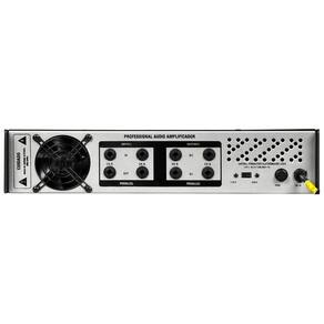 Esse amplificador possui dissipador interno e cooler, garantindo que a temperatura de funcionamento seja controlada e evitando o superaquecimento do equipamento. Além disso, conta com entrada de sinal P10 e 2 saídas speakers borne 4 Ohms , proporcionando uma conexão prática e versátil.