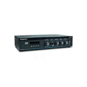O amplificador Slim 1800 G5 da Frahm possui 60 Watts RMS de potência e é ideal para pequenos ambientes. Com conexões para todos os formatos de áudio, sendo elas: USB, Micro SD, FM, Bluetooth 5.0, P2 e 1 entrada auxiliar via conector RCA que permitem conexão com qualquer emissor de áudio analógico, como: smartphones, computadores, televisores e outros.