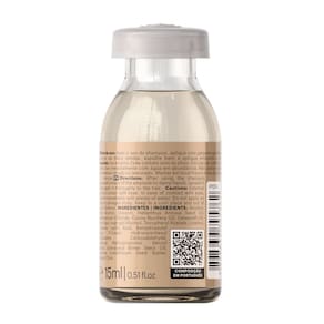 Após o uso do shampoo, aplique uma pequena quantidade da ampola nas mãos úmidas, espalhe bem e aplique enluvando os fios.