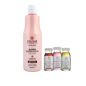 Cronograma Capilar com Ampolas de Hidratação, Reconstrução e Nutrição Dyusar + Leave-In Super Reconstrução Dyusar 500ml