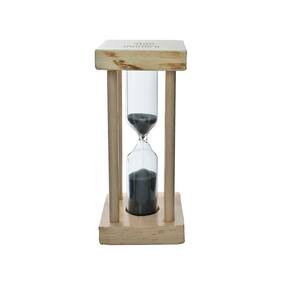 AMPULHETA DE VIDRO COM BASE DE MADEIRA 10 MINUTOS 11,5CM