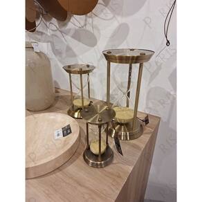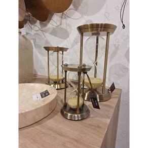 Cód: HJ3037 Ampulheta Decorativa em Metal Dourado e Areia Bege Material: Vidro, areia e metal Cor: Dourado Dimensões: 16x10,5cm (AxL)