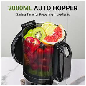 Centrífuga de frutas silenciosa com motor reversível e sistema de mastigação lenta. Extrai sucos de frutas e vegetais fibrosos, preservando a nutrição e separando o suco da polpa.Nº de velocidades