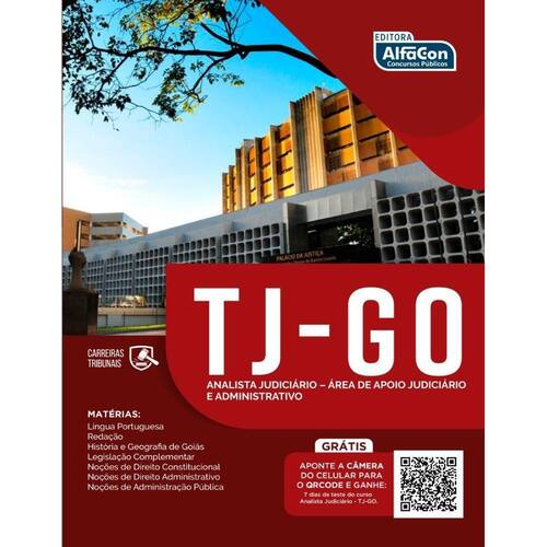 A OBRA Fazer parte do serviço público é o objetivo de muitas pessoas. Por esse motivo, os processos seletivos relacionados a essas áreas de atuação costumam ser muito concorridos. Nesse sentido, a Analista Judiciário Área de Apoio Judiciário e Administrativo TRIBUNAL DE JUSTIÇA DO ESTADO DE GOIÁS TJ GO apresenta conteúdos cobrados no último edital do concurso que sai no dia 27/09/2021. Na elaboração deste material, a Editora AlfaCon teve o cuidado de trazer as indicações mais importantes dos tópicos que fazem parte do conteúdo programático das disciplinas abordadas. Além disso, durante a explanação dos conteúdos, o estudante encontrará dicas para a sua compreensão e a cada capítulo constam exercícios gabaritados. Toda essa disposição de assuntos foi pensada para auxiliar o concurseiro na melhor compreensão de todas as disciplinas. São elas:- Língua Portuguesa- História e Geografia de Goiás- Legislação Complementar- Noções de Direito Constitucional- Noções de Direito Administrativo- Noções de Administração Pública