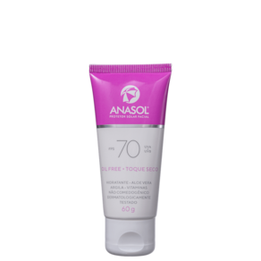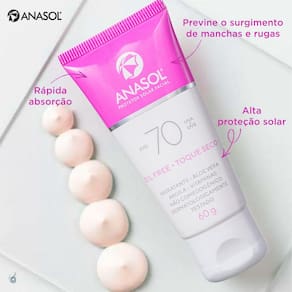 Protetor solar facial para todos os tipos de pele. Com fórmula oil free de toque seco, Anasol FPS 70 oferece alta proteção com rápida absorção.