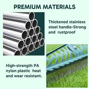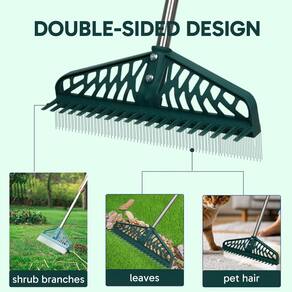 - Design frente e verso: este ancinho de grama artificial tem um design prático de dupla face. Um lado tem dentes finos de plástico denso, que podem remover rapidamente folhas caídas, detritos e pelos de animais de estimação na grama e no tapete. O outro lado é um design de plástico de dentes grossos, adequado para remover detritos maiores, como galhos, grama morta e galhos de arbustos, permitindo que você limpe facilmente cada centímetro do jardim