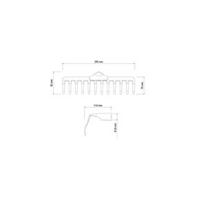 - O ancinho é temperado em todo o corpo da peça, proporcionando maior resistência e menor desgaste durante o uso. - Fabricado em aço carbono especial de alta qualidade. - Possui 2 mm de espessura. - Possui 12 dentes. - Possui olho de 26 mm de diâmetro. - Recebe pintura eletrostática a pó, que tem uma melhor apresentação visual e maior proteção contra oxidação. - A tinta utilizada na pintura é isenta de metais pesados na sua composição, o que minimiza o impacto ambiental.