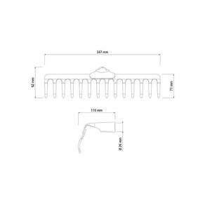 - O ancinho é temperado em todo o corpo da peça, proporcionando maior resistência e menor desgaste durante o uso. - Fabricado em aço carbono especial de alta qualidade. - Possui 3,75 mm de espessura. - Possui 14 dentes. - Possui olho de 26 mm de diâmetro. - Recebe pintura eletrostática a pó, que tem uma melhor apresentação visual e maior proteção contra oxidação. - A tinta utilizada na pintura é isenta de metais pesados na sua composição, o que minimiza o impacto ambiental.