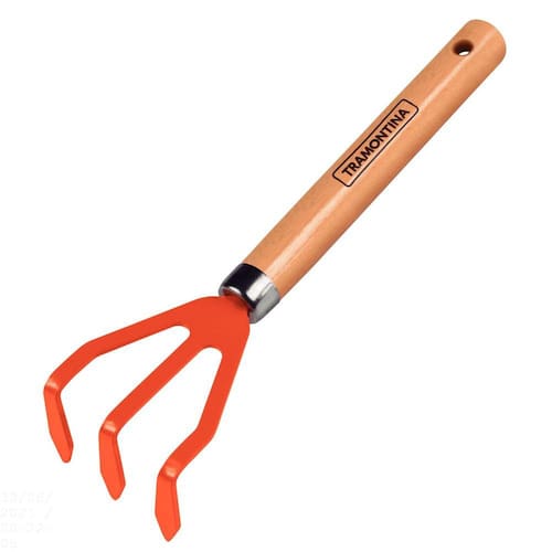 Nada como possuir utensílios práticos para as tarefas no pátio da nossa casa. Com o ancinho metálico com 3 dentes para jardinagem Tramontina com cabo de madeira o conforto e cuidado estão garantidos! Perfeito para atividades de arar o solo, afofar a terra e remover detritos, ele é uma peça desenvolvida especialmente para levar prazer para a jardinagem. É uma peça em metal com três dentes e cabo de madeira que dá mais comodidade e bem-estar no manuseio. Orientações - Fabricado em aço carbono especial de alta qualidade.- Recebe pintura eletrostática a pó, que tem uma melhor apresentação visual e maior proteção contra oxidação.- Possui 3 dentes.- O cabo desta ferramenta, além de possuir ótima resistência, é produzido com madeira de origem renovável.- Cabo com acabamento envernizado, para um melhor acabamento e apresentação do produto. A camada protetora em verniz incolor realça sua tonalidade, concedendo brilho e um toque mais liso ao produto.- Produto leve, que gera menos esforço físico do usuário e torna o trabalho mais prazeroso. Características Gerais EAN13 7891117000235 DUN14 17891117000232 NCM 8201.30.00 Peso Líquido 0,1210 kg. Peso Bruto 0,1310 kg. Metragem 0,001298 m³. Dimensões Embalagem (Compr. X Larg. X Alt.) 244x 76x 70 mm. Dimensões Produto (Compr. X Larg. X Alt.) 247x 72x 59 mm. Cor 1 FFA500 Hexa Observações - O ancinho é utilizado na agricultura, horticultura, fruticultura e jardinagem para serviços gerais, principalmente para afofar a terra e remover detritos.- Para descarte dos produtos e embalagens siga as orientações de reciclagem vigentes.