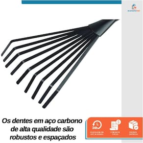 Características Principais: Dentes robustos e espaçados: Fabricados em aço carbono, são robustos e espaçados, permitindo coletar folhas, galhos secos e outros detritos com facilidade, sem danificar as plantas. Cabo ergonômico: O cabo plástico é leve e ergonômico, proporcionando uma pegada firme e confortável durante o uso, mesmo em longas sessões de trabalho. Tamanho ideal: Com comprimento total de 400mm, é ideal para diferentes trabalhos de jardinagem. Material resistente e durável: Fabricado com materiais de qualidade, garante resistência e durabilidade, suportando o uso frequente. Design compacto: Facilita o armazenamento da ferramenta em qualquer espaço quando não estiver em uso.