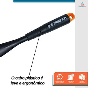 Especificações: Comprimento total: 400mm Material dos dentes: Aço carbono Material do cabo: Plástico Indicação: Trabalhos em jardinagem Referência: 12089767 Marca: Starfer