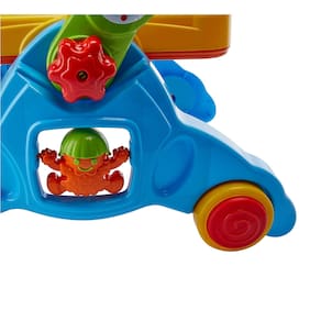Possui som, trava nas rodas, animaizinhos para encaixar, entre outros.