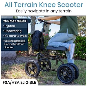 ÓTIMA ALTERNATIVA ÀS MOLETAS Recupere a sua independência com o nosso All Terrain Quad Knee Walker. Ele fornece suporte confortável após lesões no pé, tornozelo ou perna. É ótimo no pós operatório e permite que você se movimente com segurança e conforto, aliviando o tipo de fadiga e desconforto que as muletas tradicionais causam. Também incluímos uma bolsa de zenamento que se conecta facilmente ao andador para transportar com segurança itens essenciais do dia a dia. MÁXIMA ESTABILIDADE E CONTROLE As rodas pneumáticas de do nosso andador oferecem estabilidade líder do setor. Eles mantêm a base do andador estável, o que permite fácil manobrabilidade em qualquer superfície incluindo carpete, cascalho, grama, sujeira e pavimento. Além disso, o exclusivo sistema de freio a disco traseiro duplo do nosso andador oferece estabilidade e controle superiores em superfícies irregulares e inclinações suaves. ALMOFADA DE JOELHO CONTORNADA A confortável almofada de joelho de espuma do andador tem um contorno exclusivo para embalar a parte inferior da perna, proporcionando ainda mais estabilidade e suporte. Sua plataforma de espuma resiliente distribui uniformemente a pressão, reduzindo a dor e a fadiga no quadril, joelho e perna. DURABILIDADE LEVE E ALTAMENTE AJUSTÁVEL Suportando com segurança até 136 kg, também é leve e pode ser facilmente zenado em um carro. A plataforma de joelho acolchoada também é ajustável em altura entre 50 e . A alavanca de direção também é de 96 a . A plataforma de joelho removível e a alça de direção dobrável permitem que você o zene ainda mais facilmente Marca: Não Informado