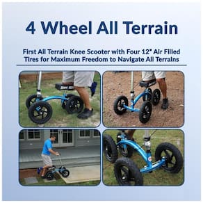 A MARCA COMPROVADA DOS EUA A KneeRover desenvolve soluções de mobilidade inovadoras nos EUA há mais de 10 anos. Nossas patinetes de joelho ajudaram centenas de milhares de clientes a se recuperar com segurança com mais liberdade de mobilidade. LIBERDADE TODO O TERRENO O KneeRover QUAD é a scooter de joelho All Terrain com 4 pneus cheios de ar, proporcionando máxima liberdade de mobilidade para navegar em sua casa, trabalho e qualquer terreno com facilidade incluindo grama, cascalho, sujeira e lacunas nas calçadas. ESTABILIDADE E CONTROLE SUPERIORES A scooter de joelho direcionável KneeRover apresenta uma tecnologia avançada de direção de barra de direção para fornecer estabilidade superior durante a direção. O robusto andador de scooter todo o terreno de 4 rodas possui freios a tambor traseiros confiáveis e freio de mão de travamento para excelente estabilidade e controle durante a navegação. Recomendamos uma velocidade de caminhada segura de menos de 5 km, h. TOTALMENTE AJUSTÁVEL E FÁCIL DE ZENAR A alternativa de muleta para scooter Knee Rover Off road oferece uma joelheira e guidão ajustáveis e é recomendada para usuários com altura de 1,5 a 2 metros. Este andador ajoelhado também se dobra rapidamente para facilitar o transporte e pode caber em carros compactos. DESEMPENHO PESADO O Knee Rover All Terrain pesa 12 kg e sua estrutura de aço resistente suporta até 158 kg de capacidade de peso. Esta alternativa versátil para muletas é ideal para indivíduos que se recuperam de um pé quebrado, tornozelo quebrado, perna quebrada, cirurgia no pé ou cirurgia no tornozelo Marca: Não Informado