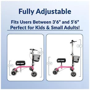A KNEE SCOOTER PEDIÁTRICA A KneeRover Knee Walker Jr é a primeira scooter de joelho direcionável da indústria projetada para crianças e adultos. Esta alternativa de muleta para scooter oferece uma joelheira e guidão ajustáveis e é recomendada para usuários com altura de 1 a 1,7 metros. ULTRA LEVE E FÁCIL DE TRANSPORTAR O andador de scooter de joelho KneeRover pesa apenas 9 kg, enquanto a estrutura de aço premium resistente suporta até 72 kg de capacidade de peso. Este andador ajoelhado também se dobra rapidamente e pode caber em carros compactos para facilitar o transporte. EXCELENTE CONTROLE DURANTE A DIREÇÃO A scooter de joelho direcionável KneeRover possui rodas suaves de adequadas para uso interno e externo, um freio de mão de travamento ajustável e um freio a tambor traseiro confiável para excelente controle durante a navegação. Recomendamos uma velocidade de caminhada segura de menos de 5 km, h. DESEMPENHO E VALOR COMPROVADOS O andador de patinete de joelho KneeRover inclui uma cesta conveniente e é uma alternativa comprovada de muleta. Este versátil kneewalker é ideal para indivíduos que se recuperam de um pé quebrado, tornozelo quebrado, perna quebrada, cirurgia no pé ou cirurgia no tornozelo Marca: Não Informado
