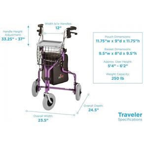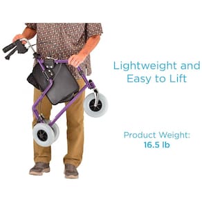 Andador Adulto Idoso 3 Rodas NOVA Medical Products com Bolsa, Roxo