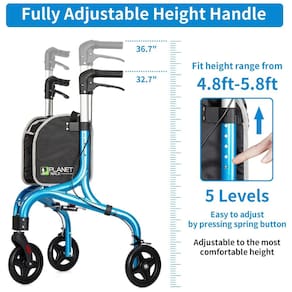 Mecanismo de dobramento de bloqueio automático engenhoso O mecanismo no andarilho permite ao usuário dobrar e desdobrar rapidamente em um segundo, tornando este andador excepcionalmente fácil de encaixar em todos os ambientes. O design dobrável do andador rolante permite que o usuário navegue facilmente em espaços estreitos, desmoronando rapidamente para transporte em um veículo ou para zenamento conveniente. Ergonomicamente projetado para uma excelente experiência Alças ergonômicas confortáveis tornam o andador adequado para qualquer pessoa com uma pegada fraca ou artrite. O guidão ajustável em altura é fácil de personalizar para um nível de conforto ideal de 81 a . Será adequado para a altura da maioria dos idosos. Andador de maior manobrabilidade para idosos Fornecendo suporte estável, o tri rollator é compacto e leve para uso em casa ou corredores e ruas estreitas, lojas, aeroportos ou em movimento. A roda giratória frontal permite que o usuário gire 360 facilmente em espaços apertados, refletindo perfeitamente sua flexibilidade tanto em ambientes internos quanto externos Marca: Não Informado