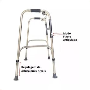 Andador adulto idoso dobrável regulável alumínio supermedy Conteúdo da embalagem: - andador 2 barras supermedy; O andador 2 barras da supermedy é uma excelente escolha para aqueles que precisam de apoio adicional ao caminhar. Com sua regulagem de altura de 6 níveis, estrutura de aço durável e capacidade de dobrar-se para facilitar o armazenamento e transporte, este andador oferece conforto, estabilidade e praticidade para usuários de todas as idades. Construído em aço cromado, é muito firme, resistente e durável. Diferenciais: - qualidade supermedy; - regulagem de altura de 6 níveis: para se adaptarem às necessidades individuais do usuário; - dobrável para facilitar o armazenamento e transporte: torna-se compacto e fácil de armazenar em casa ou no carro; - estrutura de aço durável: construído com uma estrutura de aço resistente, este andador oferece durabilidade e estabilidade, proporcionando um suporte confiável para usuários de até 120kg. Especificações e características: Dimensões: Largura: 52 cm Altura: regulável entre 75 a 85cm Capacidade de peso: 120 kg Cor: cromado + preto Tamanho fechado: 11x52x75 Peso: 2,5kg Material: aço Vantagens e benefícios: Não necessita montagem; Fácil de guardar: totalmente dobrável; Fácil de movimentar; Ergonômico; Seguro e resistente. -registro ministério da saúde / anvisa: 80499940034 Nossos produtos atendem aos mais exigentes padrões de qualidade. Em caso de dúvidas, seguimos à disposição pelo campo de perguntas. Dúvidas frequentes: - o produto tem - r. 3 meses de , contra defeitos de fabricação. Marca: Não Informado