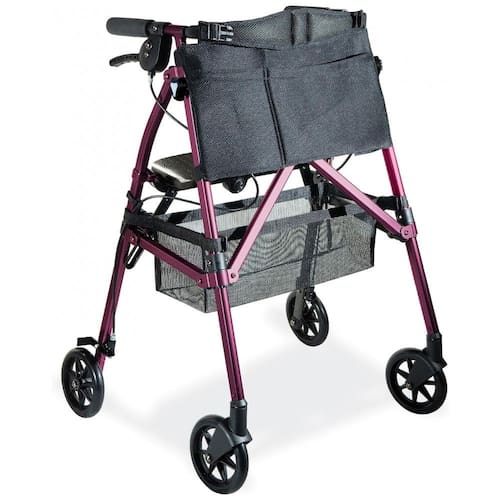 Rollator compacto dobrável O Rollator EZ dobra 3 vezes menor do que os rollators médios, tornando o portátil e fácil de zenar desmonte o andador de 4 rodas como um carrinho de guarda chuva com o toque de um dedo a fivela incluída mantém o andarilho dobrado Assento de poleiro conveniente o assento de viagem antiderrapante de por suporta até 113 kg o assento compacto e a alça traseira oferecem um lugar para sentar e descansar rapidamente durante uma viagem ou na loja o assento de perfil pequeno maximiza a portabilidade do andarilho. Não requer montagem o andarilho é pré montado e pronto para uso direto da caixa as alças acolchoadas podem ser ajustadas de 83 a , ajuste a altura do seu pulso quando o braço estiver estendido para baixo Marca: Não Informado