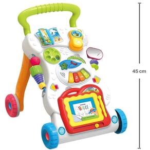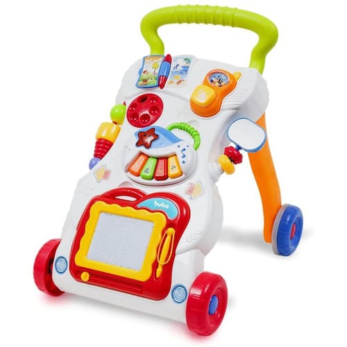 Além de ajudar o pequeno a se equilibrar em seus primeiros passinhos. O andador atividades divertido da buba possui diversas atividades interativas. Os barulhos, cores e as brincadeiras vão fazer do aprendizado uma grande diversão: desenvolvimento do bebê, o andador estimula o pequeno a dar os primeiros passos com segurança e estímulos sensoriais. Cores vibrantes, diferentes formas e atividades interativas com barulhos ajudam a desenvolver os sentidos. Diferentes formas de brincar: - além de apoiar os primeiros passos, o andador possui vários itens com atividades que vão entreter e estimular a criatividade dos pequenos: celular com buzina removível, minilivro com ilustrações, minicelular, espelho, disco giratório com números, piano musical, formas texturizadas, lousa mágica.