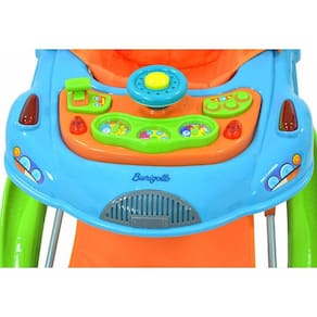 - Bandeja removível contendo brinquedos, sons e movimentos divertidos.