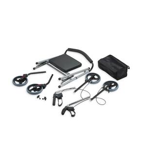 -Possui assento acolchoado; -Sistema de freio duplo que ajuda no controle de velocidade durante o deslocamento; -Estrutura em liga de alumínio antiferrugem; -Oito níveis de regulagem de altura; -Rodas de PVC que reduzem o ruído durante o uso; -Pintura eletromagnética em epóxi de alta resistência.