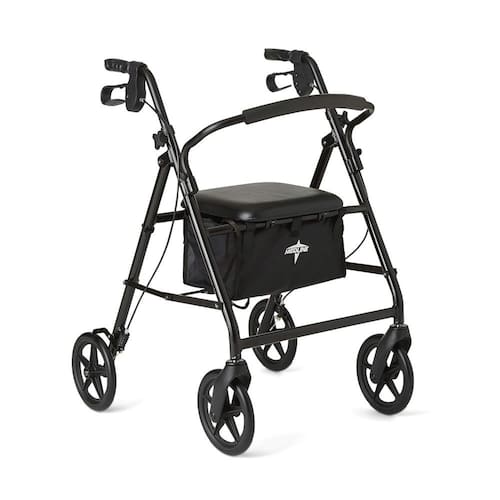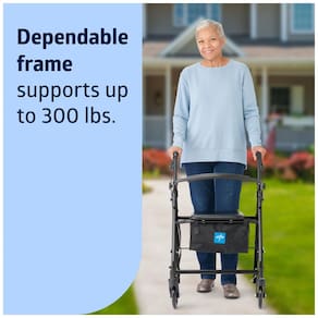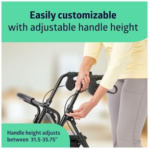 CONFORTÁVEL ONDE QUER QUE VÁ: O andador conta com um assento acolchoado de 30,5 x 30,5 cm, a 52 cm de altura do chão, apoio para as costas acolchoado e armazenamento sob o assento. Dimensões gerais: 62,2 cm de largura x 62,2 cm de profundidade x 80 a 90,5 cm de altura.