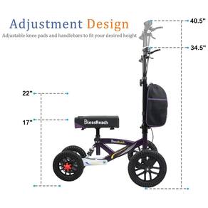 Andador de Joelho Direcionável até 136 kg com Freio a Disco, BlessReach, Roxo
