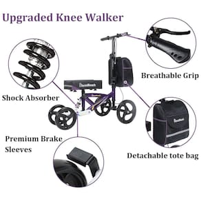 Função do andador de joelho patinetes de joelho ideais para lesões nos pés de adultos cirurgia no pé, tornozelo ou perna, bem como amputados abaixo do joelho. O andador de joelho BlessReach é uma excelente alternativa às muletas. Segurança e estabilidade o quadro inferior curvo cientificamente projetado pode fornecer melhor suporte. A função de absorção de choque especialmente projetada torna o mais confortável durante o uso, roda dianteira de 20 centímetros e roda traseira de 20 centímetros, fácil de manobrar. Freio de mão com travamento ajustável e ergonômico fornece melhor segurança. Recomendamos uma velocidade de caminhada segura de menos de 5 km, h. Confortável O uso de muletas requer muita força na parte superior do corpo, esfrega sob as axilas e é instável. Este andador de joelho é feito para uso interno e externo, é uma alternativa de muleta livre de mãos, dor e oferece a maior versatilidade entre os andadores de joelho. Andador de joelho com bolsa O andador de joelho BlessReach vem com uma bolsa de lona destacável. A bolsa de lona possui estrutura de camada dupla, fácil de desmontar, portátil, durável e bonita. Ajustável e compacto o andador de joelho orientável possui guidão com um mecanismo dobrável de liberação rápida para fácil transporte e zenamento. Esta scooter possui freios de mão duplos ajustáveis e freios traseiros duplos nas rodas Marca: Não Informado