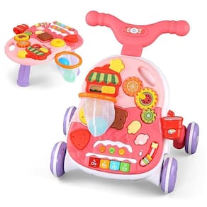 Andador de bebê 2 em 1: O andador de aprendizado de sentar a ficar em pé incentiva os primeiros passos do bebê, desenvolvendo coordenação e força ao empurrar o andador para frente, aprendendo a ficar em pé e caminhar inicialmente.