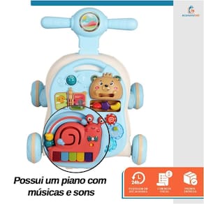 Andador Didatico Infantil Bebê 3X1 Azul Brinquedo Atividades