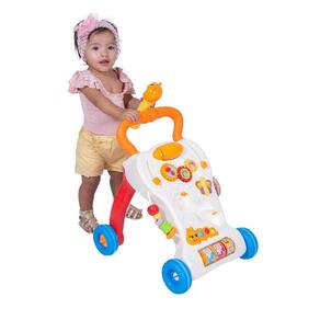 O andador didático Songs possui diversos brinquedos inclusive um microfone multifuncional com sensor de movimento que faz sons ao ser chacoalhado e toca músicas, assim como vários brinquedos que produzem sons e luzes e estimulam todos os sentidos! Mais tarde o andador pode ser utilizado para bebês que já ficam em pé para começar a caminhar!