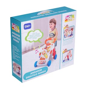 O andador didático Songs possui diversos brinquedos inclusive um microfone multifuncional com sensor de movimento que faz sons ao ser chacoalhado e toca músicas, assim como vários brinquedos que produzem sons e luzes e estimulam todos os sentidos Mais tarde o andador pode ser utilizado para bebês que já ficam em pé para começar a caminhar