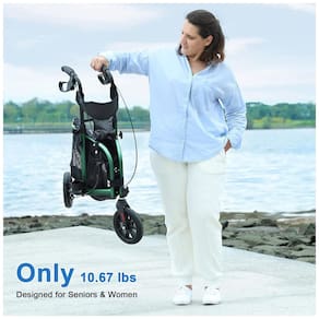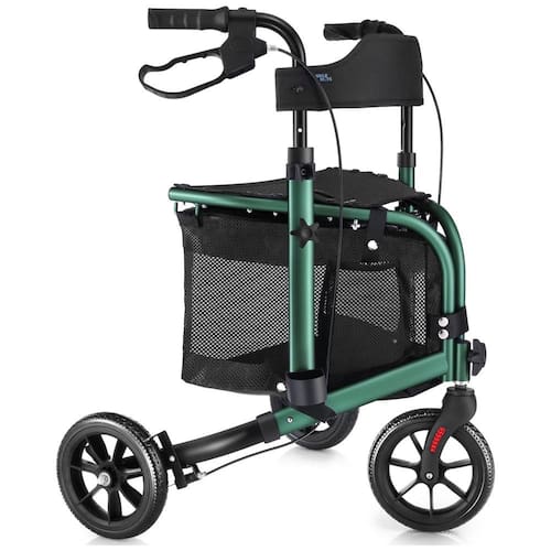 Andador Dobrável de 3 Rodas com Assento Acolchoado Ideal para Idosos, WALK MATE, Verde