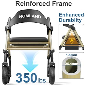 O andador dobrável Homland para idosos foi projetado para oferecer conforto, segurança e praticidade. Sua estrutura de liga de alumínio reforçada suporta até 181,41 kg, garantindo durabilidade e resistência. Com apenas 7,57 kg, é leve e fácil de transportar, além de contar com um design de dobragem rápida em 3 segundos, o que facilita o armazenamento.