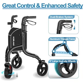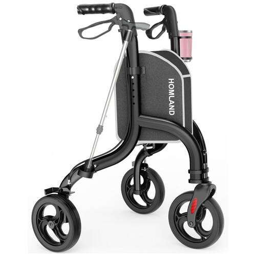 Versátil de 3 Rodas: Com uma estrutura durável, bolsa de armazenamento espaçosa, além de um suporte para bengala e um porta-copos, este rollator com rodas oferece estabilidade tanto em ambientes internos quanto externos. Suas rodas grandes de 20,3 cm fornecem fácil manobrabilidade em espaços estreitos, tornando-o ideal para idosos que buscam estabilidade portátil.