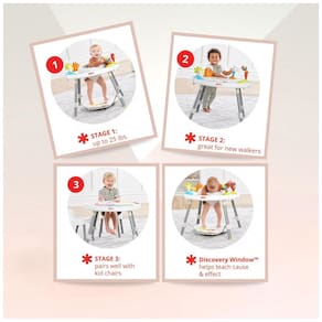 Projetado em colaboração com um pediatra, nosso centro de atividades para bebês oferece uma abordagem de corpo inteiro para brincar e aprender. Nossa janela de descoberta exclusiva permite que o bebê veja seus pés enquanto brinca para aprender causa e efeito Fácil de montar, com brinquedos que podem ser posicionados em qualquer lugar para o bebê, possui um assento giratório de 360 graus que gira e estica para pular À medida que o bebê cresce, nosso centro de atividades se converte para facilitar o cruzeiro tornando se uma mesa limpa e resistente para colorir, brincar e muito mais Três estágios de uso sentar, girar, pular e brincar Navegue e interaja Mesa de jogo 25 atividades de desenvolvimento Brinquedos de encaixe podem ser posicionados com base nas habilidades do bebê Marca: Não Informado