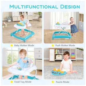 Andador 4 em 1 Multifuncional para Bebê: Modo Andador para Bebê: ajuda a desenvolver o equilíbrio e o senso de direção, incentivando os bebês a explorar e andar para frente. Modo Andador de Empurrar: fortalece os músculos das pernas e promove a caminhada independente. Modo Bandeja para Refeições: conveniente para as refeições do bebê. Modo Quebra-Cabeça: oferece aprendizado educacional e divertido. Adequado para meninos e meninas de 7 a 14 meses.