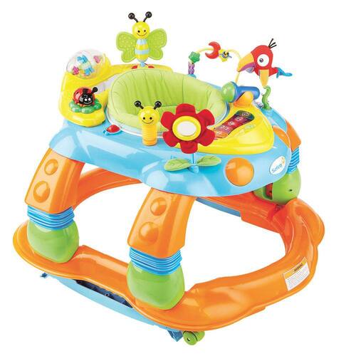 O Centro de Atividades Melody Garden da Safety 1st é um produto tão versátil quanto divertido, feito para o seu bebê passar alguns dos melhores momentos da vida. Ele ajuda a desenvolver as habilidades motoras e sentidos, como tato, visão e audição. Pode ser utilizado como andador, balanço e centro de entretenimento, tem 3 posições de altura e assento giratório 360º. Centro de Atividade Safety 1st Melody Garden. O Centro de Atividades Melody Garden da Safety 1st é um andador completo, que ajuda a desenvolver a coordenação motora e os sentidos com estímulos táteis, visuais e sonoros. Funções de balanço, andador e centro de entretenimento com 3 posições de altura e assento giratório 360º removível e lavável. Bandeja removível com brinquedos, luzes e sons da natureza. Possui exclusivo sistema anti-quedas que evita acidentes em escadas e pisos irregulares, aprovado pelo INMETRO conforme a norma ABNT NBR 16.311 para crianças entre cerca de 6 meses até 12kg.