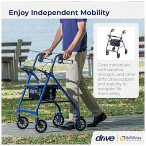 Marca: Drive Medical Cor: Azul Material: Alumínio, Aço Peso do Item: 14 libras (aproximadamente 6,35 kg) Dimensões do Produto: 28" D x 24" L x 33" A (aproximadamente 71 x 61 x 84 cm) Marca: Não Informado