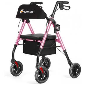 ANDADOR DE ROLADOR LEVE: O andador dobrável possui uma estrutura de alumínio e a capacidade máxima de peso é de 300 libras aproximadamente 136 kg. Você pode virar o encosto para sentar e descansar, é durável e confortável. É amigável para sua cintura e quadris. Trave os freios quando estiver sentado.