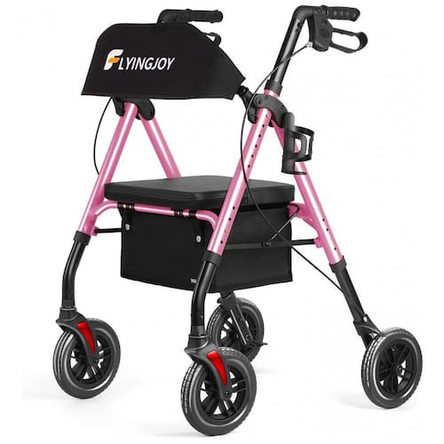 FACILMENTE DOBRA E ZENAMENTO: O andador rollator Flyingjoy é facilmente dobrado para transporte e zenamento convenientes. Basta levantar o assento e puxar a alavanca dobrável para dobrar o rollator.