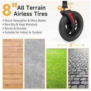 PNEUS SEM AR PARA TODOS OS TERRENOS: O andador rollator para idosos possui pneus sem ar de 8 polegadas aproximadamente 20,32 centimetros e tem função de absorção de choque, sendo adequado para ambientes internos e externos.