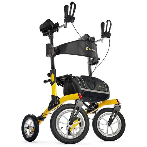 Andador para Idoso Dobrável até 136kg com Assento, Pneus Pneumáticos e Porta Bengala, Comodita, Amarelo