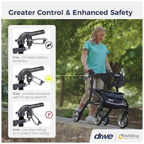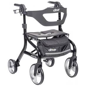 Rollator Walker com Assento: Com um quadro de alumínio elegante e robusto, este andador leve oferece suporte estável para até 159 kg. O modelo dobrável pode ser facilmente comprimido para um tamanho compacto com apenas uma mão, garantindo praticidade e facilidade de transporte.