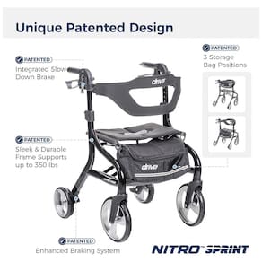 3 Posições de Armazenamento: A bolsa de armazenamento espaçosa pode ser montada em três pontos (barras de apoio e parte frontal ou traseira sob o assento), oferecendo versatilidade. O modelo Nitro Sprint também inclui um suporte prático para acessórios como bengalas, celulares ou um porta-copos.