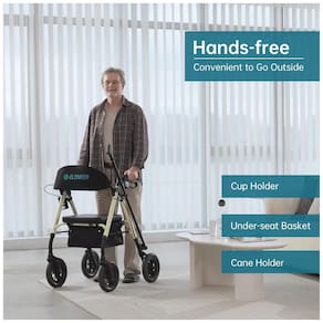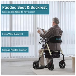 Andador para Idosos com Assento e Encosto Acolchoado e Estrutura Ajustável, Até 136 Kg, ELENKER, Champanhe