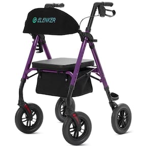 Andador para Idosos com Assento e Encosto Acolchoado e Estrutura Ajustável, Até 136 Kg, ELENKER, Roxo