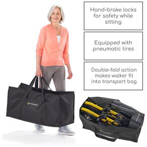 Ajuste de Altura do Guidão - O andador com rodas possui altura ajustável de fácil uso, permitindo uma personalização perfeita para diferentes alturas, de 1,63 m a 1,93 m. Inclui uma bolsa de nylon removível e lavável para guardar itens pessoais.