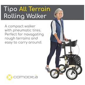 Estrutura Reforçada: Com capacidade de até 136 kg, este andador oferece durabilidade e resistência para o uso diário. Assento Confortável: O assento de nylon de 44,5 cm de largura e o encosto ergonômico acolchoado proporcionam máximo conforto para pausas durante o uso. Altura Ajustável: O andador possui alças com altura ajustável (recomendada de 1,62 m a 1,93 m), garantindo maior comodidade ao usuário. Rodas de Alta Performance: Com rodas dianteiras de 30 cm em alumínio e traseiras de 25 cm com pneus pneumáticos, oferece excelente tração e estabilidade em diversos tipos de terreno, como superfícies irregulares, cascalho, calçadas e areia firme. Ação de Dobragem Dupla e Bolsa de Transporte: Sistema de dobragem dupla facilita o armazenamento e transporte, enquanto a bolsa removível de nylon oferece praticidade para itens pessoais. Suporte para Copo e Bengala: Inclui suporte para copo Pisa, suporte para bengala e quatro refletores para maior visibilidade em ambientes externos. O freio de mão com bloqueio garante segurança ao fazer pausas.